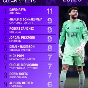 1月27日讯 数据统计显示,本赛季英超联赛到目前为止,阿森纳门将拉亚已经11场零封,比其他任何门将都更多。在本赛季的门将...